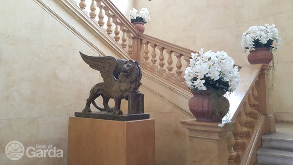 Il Palazzo del Podestà si distingue per la sua elegante facciata in stile veneziano. L’edificio è disposto su due piani principali, con ampie finestre ad arco che donano luminosità agli interni. La facciata principale, rivolta verso il lago, è ornata da un porticato con colonne, uno degli elementi architettonici più suggestivi del palazzo. Il loggiato è aperto e accessibile fino a via Butturini, diviso da due file di colonne che sorreggono un soffitto a travi lignee. Il soffitto del loggiato è decorato con gli stemmi dei Comuni della Magnifica Patria, e sotto di esso sono conservate lapidi che celebrano la visita di storici personaggi come Re Vittorio Emanuele II, Giuseppe Mazzini, Camillo Benso Conte di Cavour e Giuseppe Garibaldi, risalenti al periodo dell’unità d’Italia. Un arco marrone, visibile sotto i portici, segna il confine tra la parte nuova della costruzione, datata 1901 e realizzata nello stile dell’epoca, e la parte più antica. Entrando nel palazzo, si notano delle colonne romane che delimitavano le strade dell’epoca. Salendo lo scalone principale, si può ammirare un dipinto allegorico e simbolico del XVIII secolo del pittore salodiano Andrea Bertanza, raffigurante una donna, personificazione della Magnifica Patria, inginocchiata davanti al Provveditore, offrendo una cornucopia piena dei frutti delle località lacustri. La Sala del Consiglio è arredata con grandi armadi che custodiscono documenti e carte originali d’archivio, testimonianze della storia dei Comuni della Magnifica Patria. Il soffitto a cassettoni è decorato con dipinti di dame e personaggi illustri come Petrarca, Archimede, Cicerone e Platone. Al centro, una pala di Andrea Bertanza rappresenta, in un misto di sacro e profano, il Comune di Salò, con un Cristo trionfante che regge la croce e San Carlo Borromeo inginocchiato ai suoi piedi. Sotto, Nettuno emerge dal lago con cavalli, pesci e limoni, simboli della Magnifica Patria. La Sala dei Provveditori, affrescata con gli stemmi delle casate dei vari Provveditori succedutisi nel corso dei secoli, offre un ulteriore sguardo sulla storia del luogo. Nella parte retrostante della Loggia, si trova un orologio particolare, ancora funzionante, azionato da un meccanismo di leve e pesi.Il Palazzo del Podestà oggi
