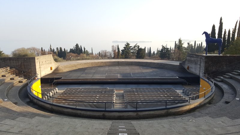 Oltre all’auditorium, il Vittoriale degli Italiani ospita un teatro all’aperto, che D’Annunzio volle nello stile del Teatro Grande di Pompei. Un’opera così maestose richiese molto tempo per la realizzazione, tanto che né il poeta né l’architetto Maroni ne videro la costruzione. La posizione privilegiata che occupa oggi il Teatro all’Aperto incanterà i visitatori. Gli spettacoli si svolgono in una cornice in grado di proiettare lo sguardo degli spettatori oltre il palco, verso il promontorio di Sirmione, il Monte Baldo, la Rocca di Manerba e l’isola di Garda. L’anfiteatro contiene 1.500 spettatori.Villa Mirabella